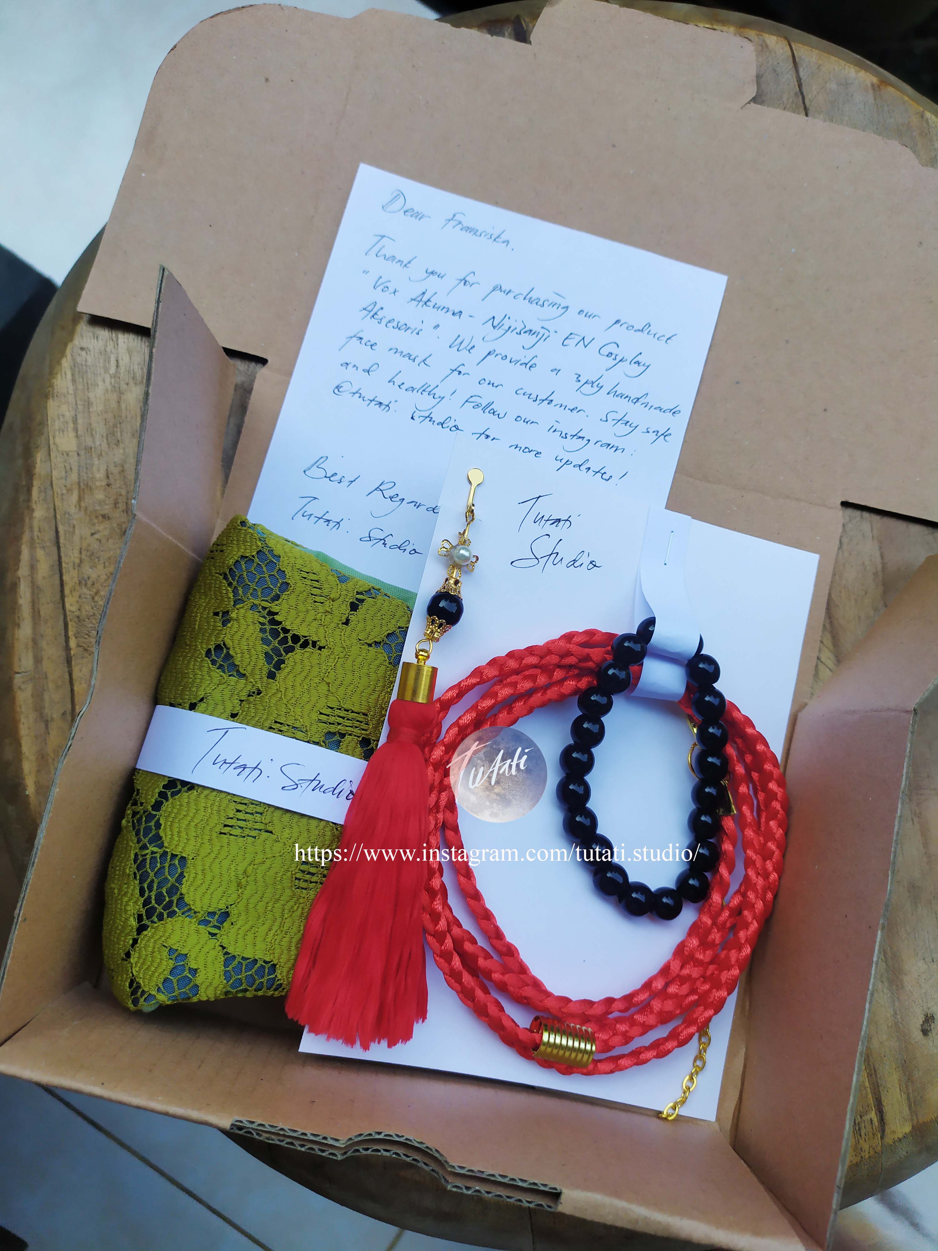 With a total of seven orders in this second batch, the first position is held by Vox Akuma - Nijisanji EN. This product consists of three accessories that come in a set, I make earring, necklace and also bracelet that you can buy at my e-commerce store.