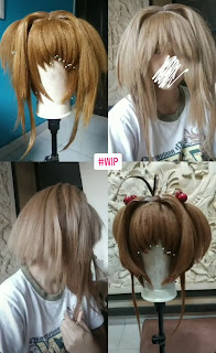 You can see the wig styling process this time through the photos below. The initial process of styling by cutting the wig as desired/designing the character, then removing the top of the hair, crimping, teasing and styling the wig as desired/character design.